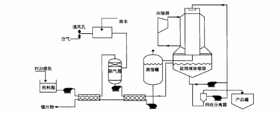 鹽濃縮工藝能夠?qū)碜猿R?guī)處理系統(tǒng)的脫硫廢水,通過蒸汽壓縮式降膜蒸發(fā)器,處理生成純凈的蒸餾水,用于回收到FGD系統(tǒng)作為工藝補(bǔ)充水。這個(gè)系統(tǒng)的副產(chǎn)物是氯化鈣溶液,它適合應(yīng)用在防塵、穩(wěn)定土壤、防冰控制以及其他與高速公路建設(shè)相關(guān)的領(lǐng)域。