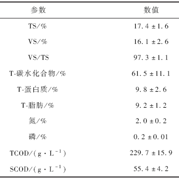 實(shí)驗(yàn)所用的廚余垃圾取自于西安思源學(xué)院學(xué)生食堂,主要包括米飯、面條、饅頭、蔬菜、肉和蛋類(lèi)等食物殘?jiān)?原料首先人工剔除掉其中的骨頭以及塑料等無(wú)機(jī)雜質(zhì),然后利用食物粉碎機(jī)將其破碎至顆粒尺寸5 mm 以下,其物理化學(xué)特性見(jiàn)表1。