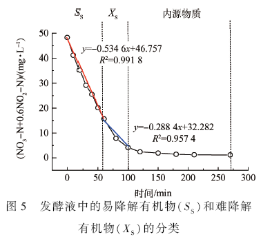 如圖5 所示,混合碳源中的SS 可以根據(jù)碳源的PDN 和由快速降解碳源引起的N 損耗計(jì)算出來(lái),公式如下: