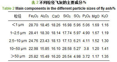 飛灰的粒徑分布采用馬爾文MS2000激光粒度儀分析, 測(cè)量范圍為:0.02~2 000 μm, 掃面的速度可以達(dá)到1 000次·s-1.由圖 1可知, 飛灰的粒度分布廣泛, 從0.316~2 187.76 μm, 其中小于100 μm的顆粒物占69.71%, 100~550 μm占到了28.46%, 大于550 μm只占1.81%.含量細(xì)微的飛灰極易飛散到大氣中, 造成大氣的污染.